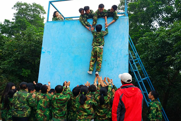 時(shí)間。大家一致推選營銷副總擔(dān)任總司令,并制定出在1個(gè)小時(shí)內(nèi)完成的目標(biāo)。項(xiàng)目是要求每位成員都要翻越4米多高的光滑墻面,且不能